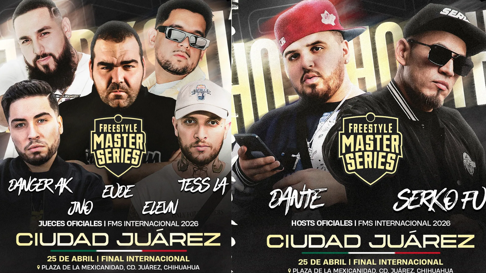 Descubre quiénes son los jueces, DJs y hosts oficiales de la FMS Internacional 2026 en Ciudad Juárez. Conoce el equipo de lujo para la gran final de Urban Roosters.